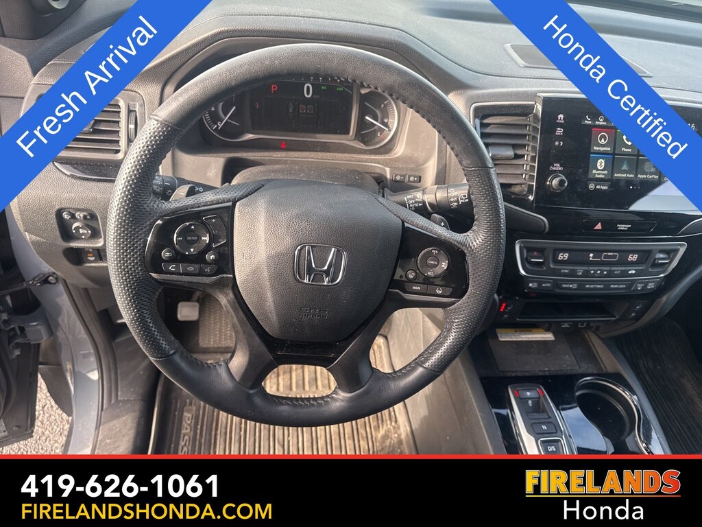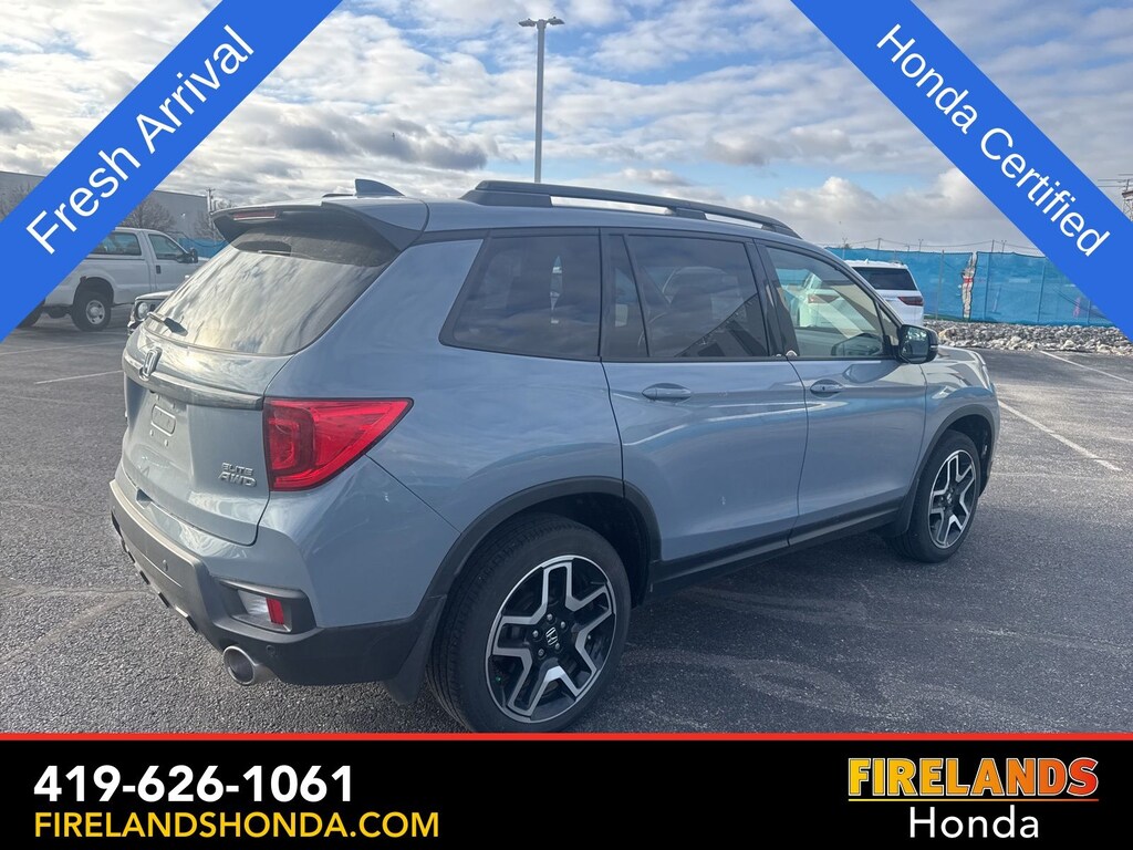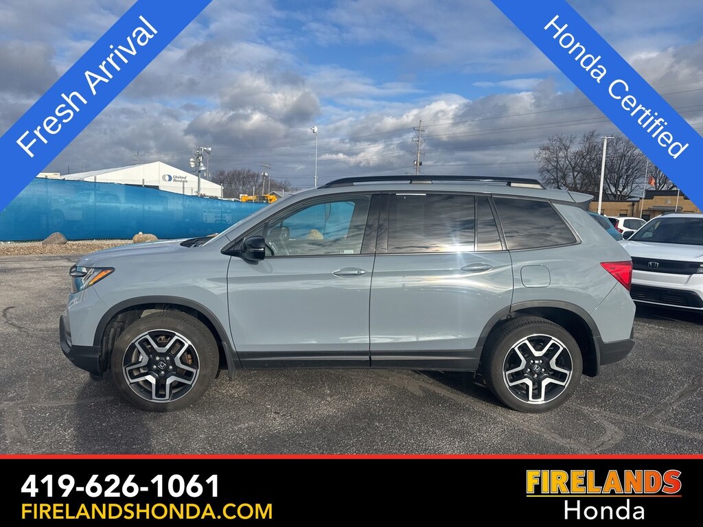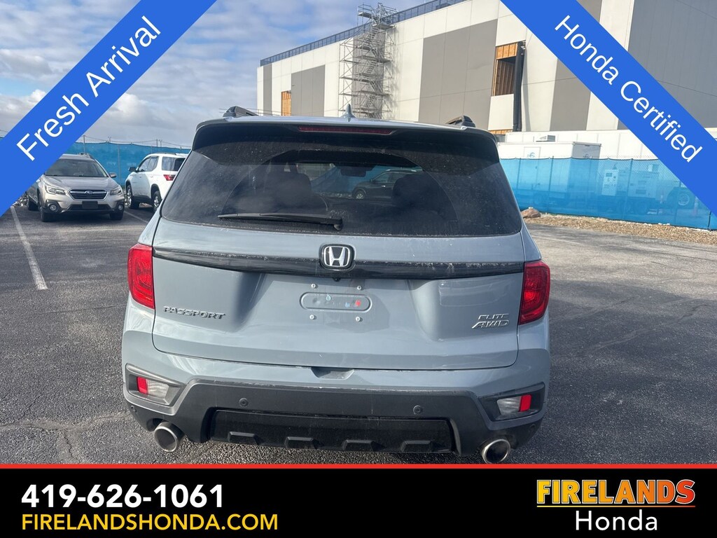 Firelands Honda is proud to offer this fantastic-looking 2023 Honda Passport in Sonic Gray Pearl. This Passport has been checked by our award winning service department. Hot features include: Bluetooth Hands Free, Back Up Camera, Navigation / GPS, Remote Start, Adaptive Cruise Control, Balance of Factory Warranty, Service Records Available, All-Wheel Drive, Heated Leather Seats, Locally Owned New Car Trade, Lane Departure Warning, Apple Carplay/Android Auto, Blind Spot Detection, Fog Lights, Automatic Emergency Braking, Forward Collision Warning, Rear Cross Traffic Alert, Wireless Charging Pad, Honda Certified, Moonroof / Sunroof, Clean CARFAX, One Owner, No Accidents, Power Liftgate, Memory Seats, Heated Steering Wheel, Heated Rear Seats. Certified.