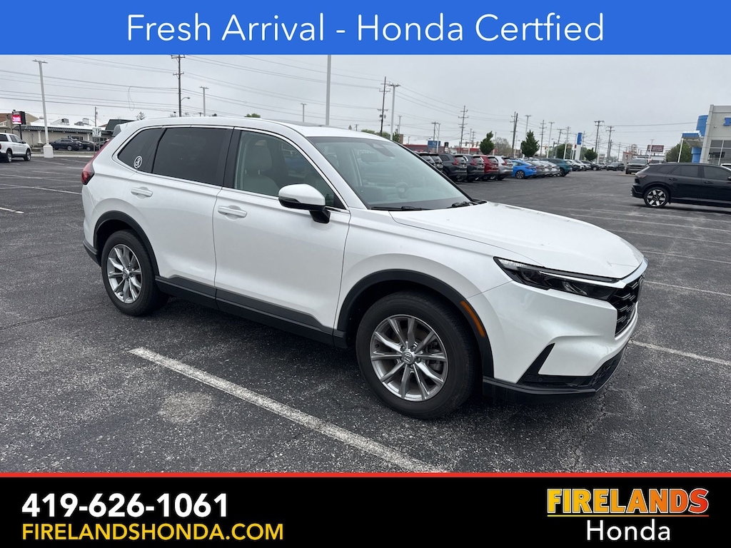 Firelands Honda is proud to offer this good-looking 2024 Honda CR-V in Platinum White Pearl. This CR-V has been checked by our award winning service department. Hot features include: Bluetooth Hands Free, Back Up Camera, Remote Start, Heated Leather Seats, Adaptive Cruise Control, Balance of Factory Warranty, Service Records Available, All-Wheel Drive, Locally Owned New Car Trade, Lane Departure Warning, Apple Carplay/Android Auto, Blind Spot Detection, Automatic Emergency Braking, Forward Collision Warning, Rear Cross Traffic Alert, Honda Certified, Moonroof / Sunroof, Clean CARFAX, One Owner, Power Liftgate, Memory Seats. Certified.