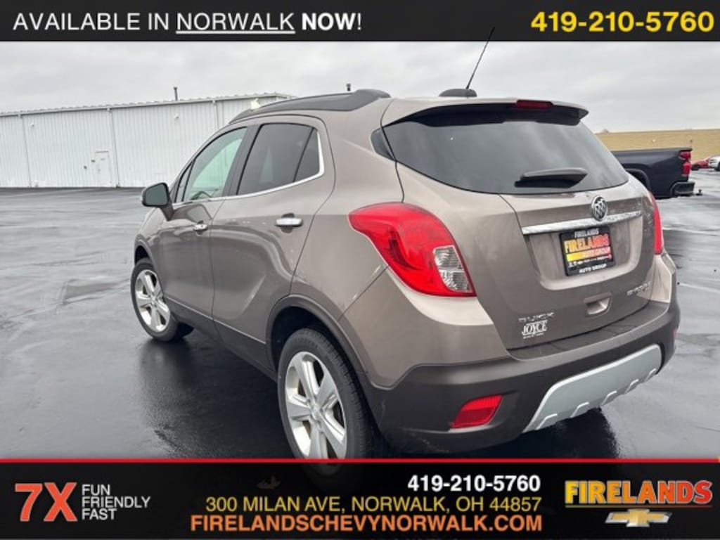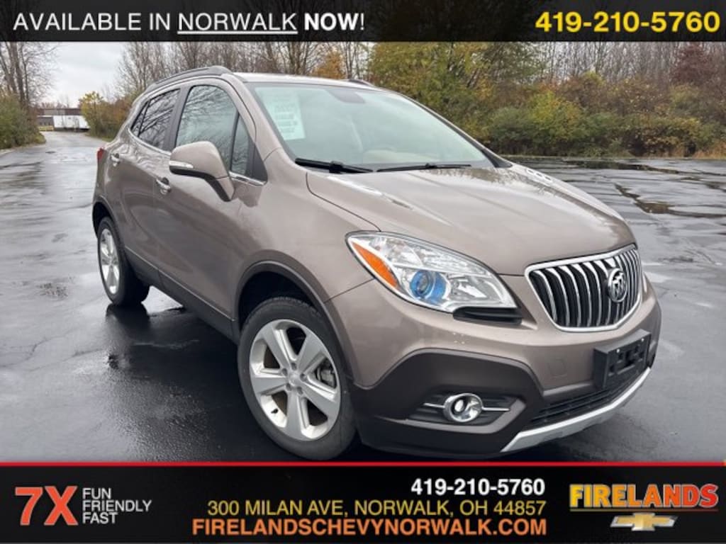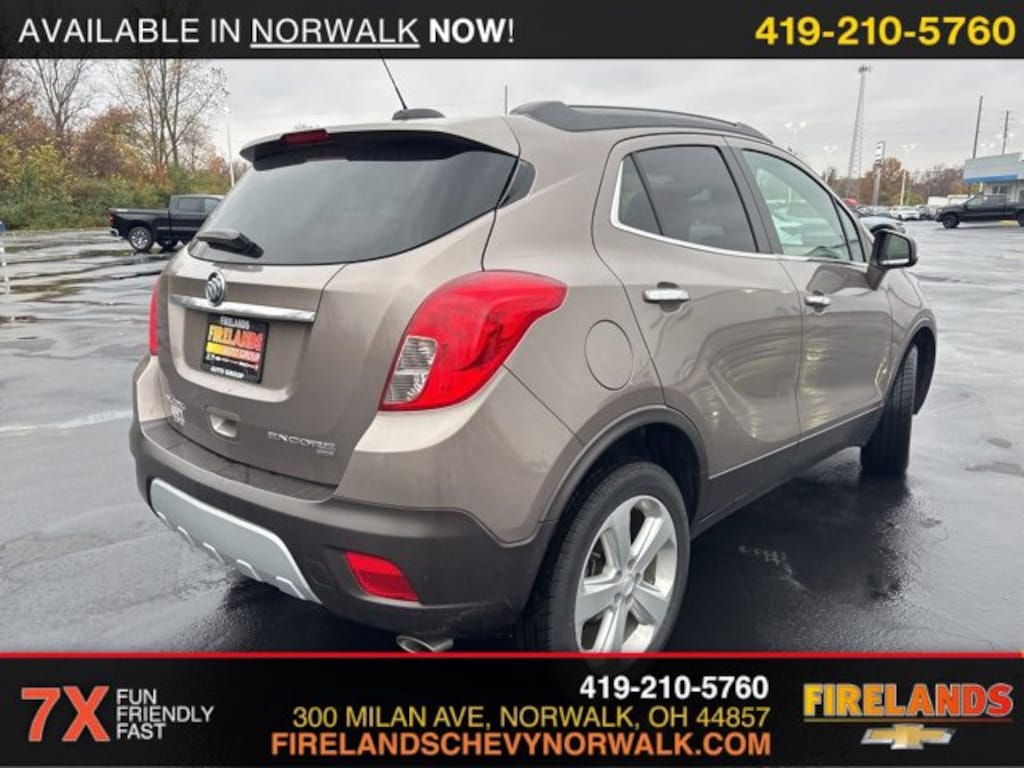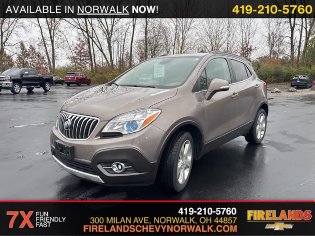 2015 Buick Encore LeatherCar Bravo Certified, 1-Owner.Clean CARFAX. CARFAX One-Owner.AWD ECOTEC 1.4L I4 SMPI DOHC Turbocharged VVT 6-Speed Automatic Electronic with Overdrive23/30 City/Highway MPG Recent Arrival!Awards:* JD Power Automotive Performance, Execution and Layout (APEAL) Study * 2015 IIHS Top Safety Pick * 2015 KBB.com 5-Year Cost to Own Awards * 2015 KBB.com Brand Image AwardsWelcome to the Firelands Family!! We understand that you donât want to come to a dealership and play games for hours. Thatâs why we focus on a few key principles: Be Really Fast Be Really Friendly, Be Really Fun, Be Really Honest. The price you see is the price you pay; plain and simple! We price our cars NOT our customers and hope that you have fun when you are here. We will never advertise misleading or confusing payments thatâs not our style. Rather, we hope to give you the best retail experience possible; after all: we LIVE off repeat and referral business. Our Vehicle Specialists are NOT paid on the profit (or loss) of a vehicle. You have DIRECT access to our Sales and Finance Managers cell phone numbers. We canât wait to put our best foot forward and have you leave smiling for years to come!