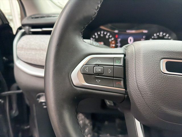 Stepping inside, you'll be greeted by a wealth of premium features, including a 10.1" Uconnect 5 display, a heated steering wheel, and leather-trimmed bucket seats. The Compass Latitude Lux also boasts a suite of advanced safety technologies, such as Blind Spot Monitoring, Rear Cross-Path Detection, and ParkView Rear Back-Up Camera, ensuring your driving experience is both comfortable and secure.