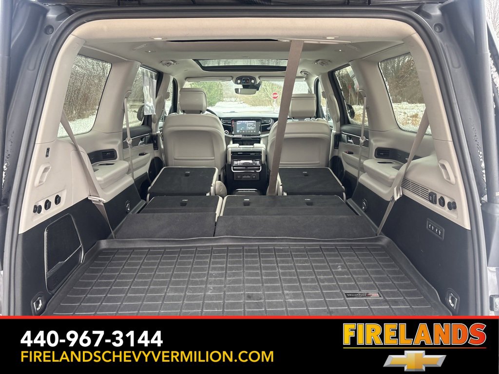 Accident Free CarFax, Locally Owned New Car Trade, Well Serviced, Power Sunroof, AWD / 4WD, AppleCar Play / Android Auto, Heated Steering Wheel, Heated Seats, Cooled Seats, Leather Seats, Memory Seats, Remote Start, Steering Wheel Controls, Bluetooth Audio, 19 Speaker McIntosh Audio System, 3 Panel Sunroof, 7-Passenger Seating, Adjustable Roof Rail Crossbars, Cargo Cover, Flexible Seating Group, Floor Console w/Cupholder, Fully automatic headlights, Garage door transmitter, Heated door mirrors, Heated front seats, Heated rear seats, Heated steering wheel, Luxury Front & Rear Floor Mats, Memory seat, Navigation System, Power Deployable Running Boards, Power driver seat, Power Liftgate, Power Tip/Slide Recline 2nd Row Buckets, Premium Group I (DISC), Quick Order Package 22N, Radio: Uconnect 5 Nav w/10.1 Display, Rear window defroster, Reversible Carpet/Vinyl Cargo Mat, Steering wheel memory, Turn signal indicator mirrors, Ventilated front seats, Wheels: 22 x 9.0 Premium 3 Aluminum (DISC).