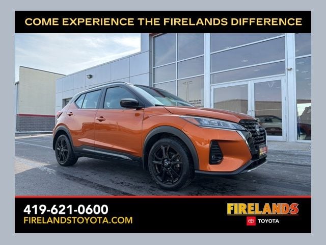 Firelands Toyota is proud to offer this superb 2023 Nissan Kicks in Monarch Orange Metallic/Super Black. This Kicks has been checked by our award winning service department. Hot features include; Back Up Camera, Clean CARFAX, One Owner, No Accidents, Bose Personal Plus Audio System, Heated Front Seats, Heated Steering Wheel, NissanConnect Services, Prima-Tex Appointed Seat Trim, Security System, SR Premium Package, Technology Package, Tonneau Cover.