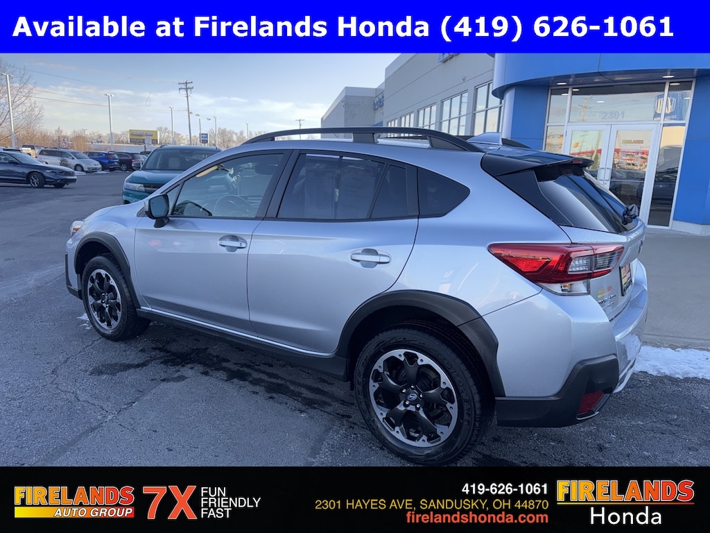 Firelands Honda is proud to offer this outstanding 2023 Subaru Crosstrek in Ice Silver Metallic. This Crosstrek has been checked by our award winning service department. Hot features include: Bluetooth Hands Free, Back Up Camera, Adaptive Cruise Control, Balance of Factory Warranty, Service Records Available, All-Wheel Drive, Lane Departure Warning, Apple Carplay/Android Auto, Blind Spot Detection, Fog Lights, Automatic Emergency Braking, Forward Collision Warning, Rear Cross Traffic Alert, Moonroof / Sunroof, Clean CARFAX, One Owner, No Accidents, Heated Seats.