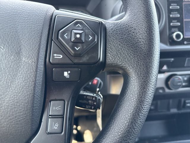 Inside, you'll find a well-appointed cabin with thoughtful amenities, including air conditioning, power windows, steering wheel-mounted audio controls, and more. The Tacoma also offers the latest in connectivity and safety technology, with features like Apple CarPlay, Android Auto, and a comprehensive suite of advanced driver assistance systems.
